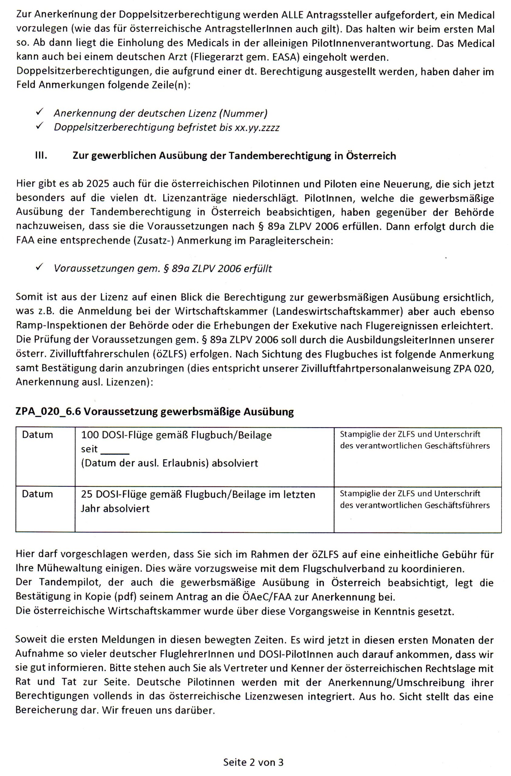 Somit dürfen die bisher in Österreich ausgebildeten Tandempiloten und Fluglehrer weiterhin in Deutschland fliegen bzw. tätig sein.
